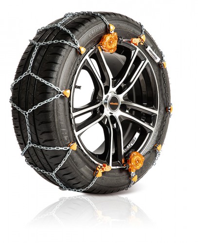 La catena da neve da 9 mm autotensionante, grazie al tensionatore automatico. Massimo comfort di guida. Priva di particolari che attraversano il cerchione.