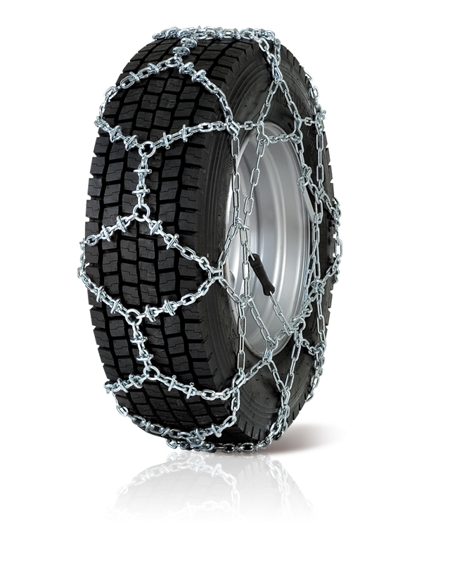 Catena con maglie di rinforzo mobili per autocarri e mezzi professionali leggeri. Trazione eccellente e maggiore superficie di usura.