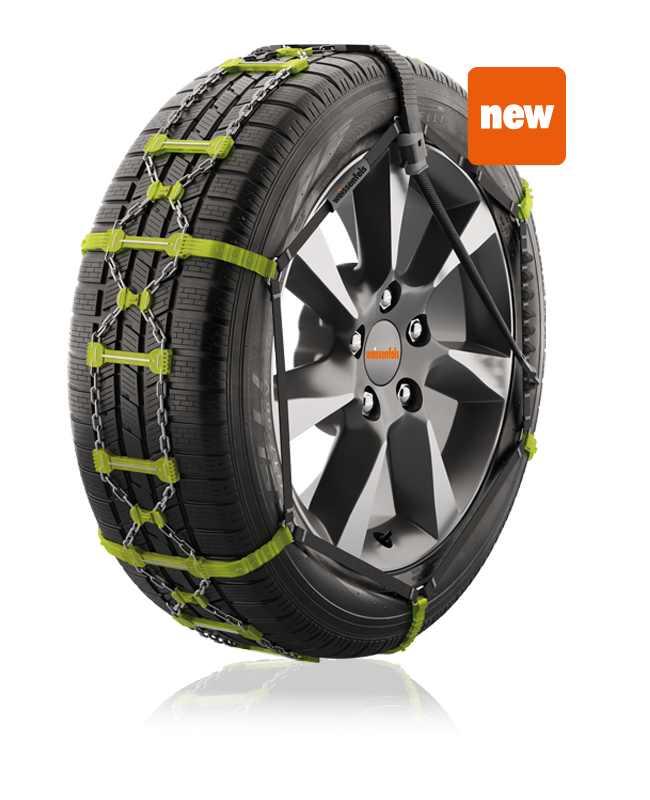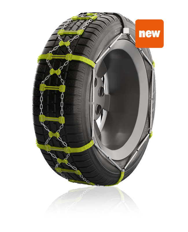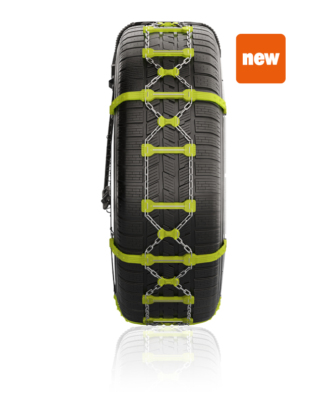 • Barre e maglie della catena in acciaio temprato posizionate a 45° per una guida sicura e un'eccellente trazione sia su neve che su ghiaccio.